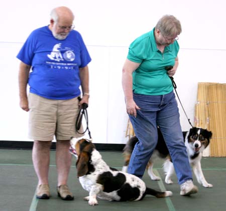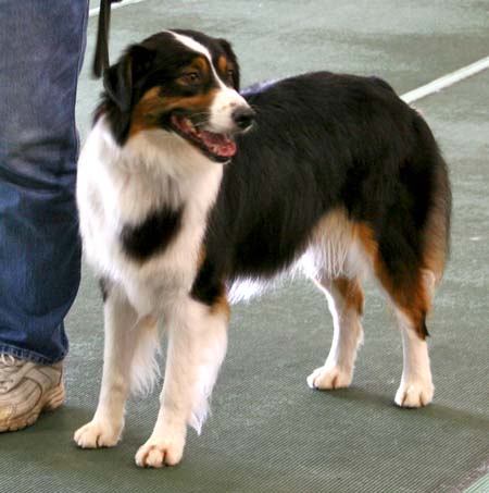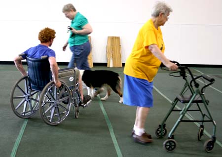 Raisin, an Australian Shepherd with Ellen among the medical equipment