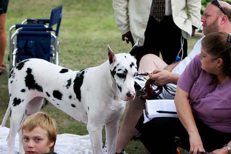 Ivalis holding on to her dane. Betsy Zellmer is standing