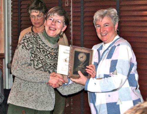 Lynn Cooch accepting her own Award for Ashton, CH Sumner's Star Gaz'n Astronomer. Fay Rogstad also received an Award for Ashton since she was his breeder.
