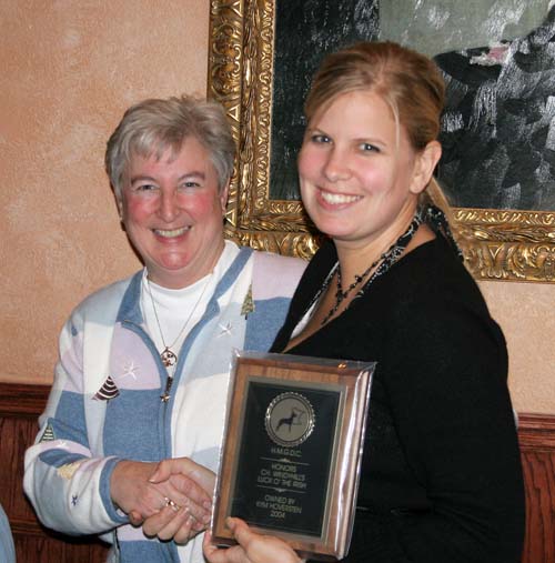 Kym Hoversten accepting her Award for Guinness, CH Windy Hill's Luck O' The Irish