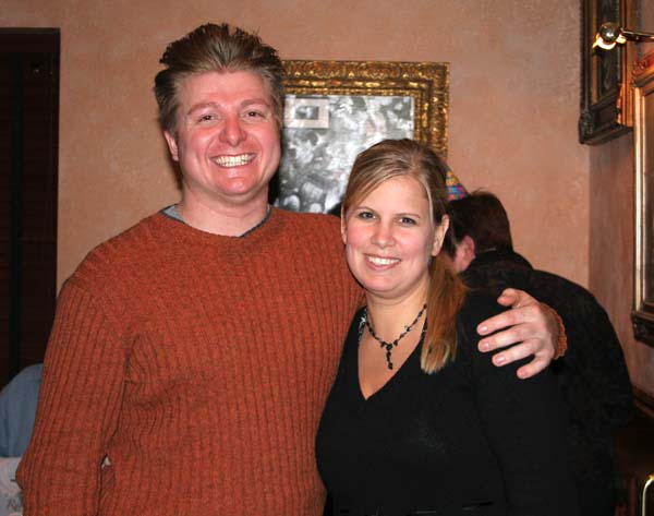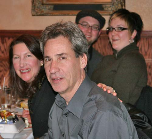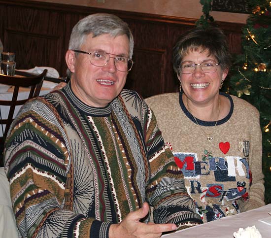 Diane Monson with her face behind Denny Land, Paul Meyer next to Diane,