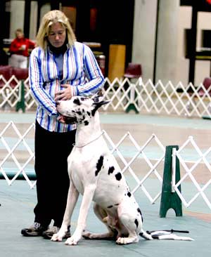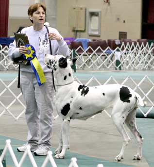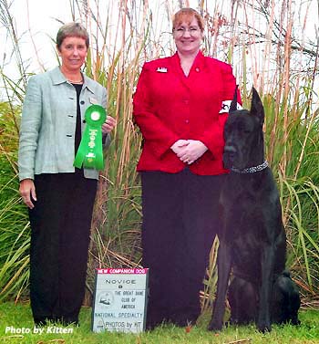 Colras Full Attention Required Req'd V CJ CD RN CGC Tiger and Chantel Johnson getting their CD title in Novice B at the National with Judge Louise Botko. Photo by Kitten Rodwell