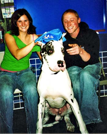 Bogart's grandpa deals in antiques and he saw this saddle in a store and thought it would be cute to see how it looked on Bo so he asked to borrow it to take his picture. Now you can see what a saddle really looks like on a Great Dane!