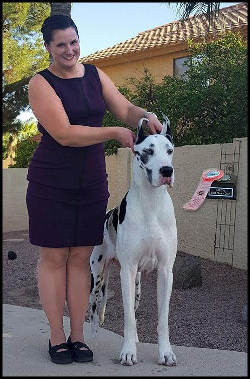 Rogue with Kristen at the 2017 GDCA National in Phoenix Best 6-8 Veteran Bitch GCH Rainmaster Danu Rogue Explosion CD RN GDCA-VA