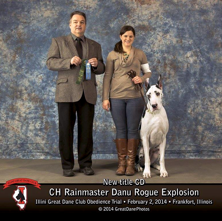 New Champion - December 7, 2013 "Rogue" Ch. RainMaster's Danu Rogue Explosion Handled by Sue Larkin Rogue is owned by Kristen Kenney and Jan Miner