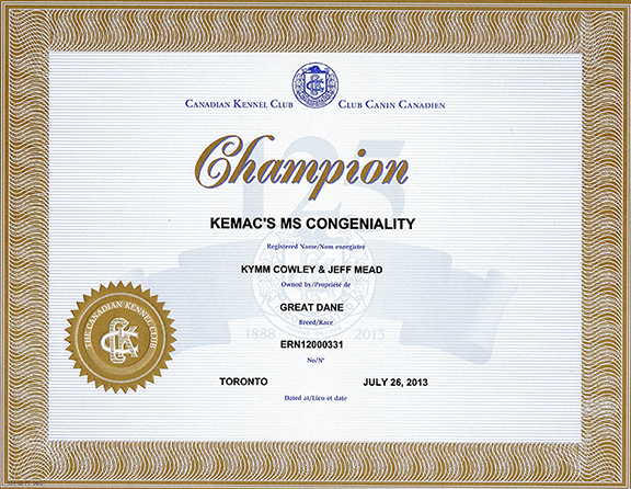Obtaining her CKC champion title, Lakehead K.C. - Friday, July 26, 2013.
