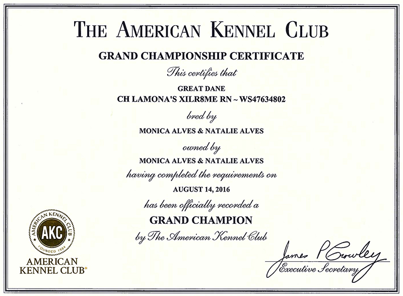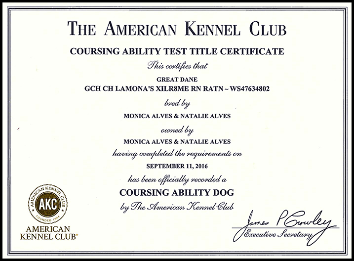 GCH CH Lamona's XILR8ME RN CA RATN