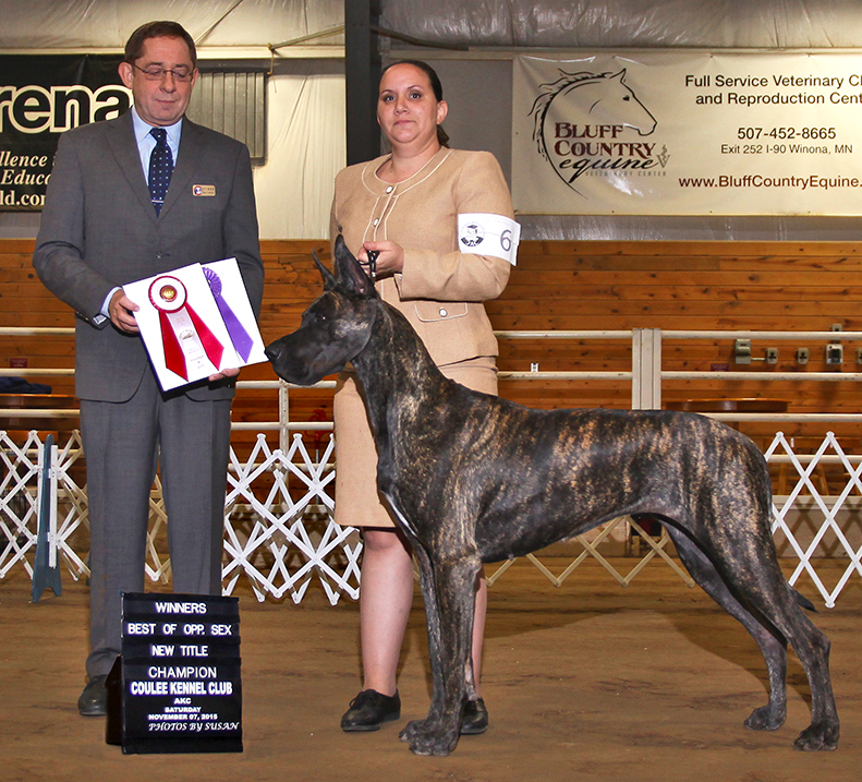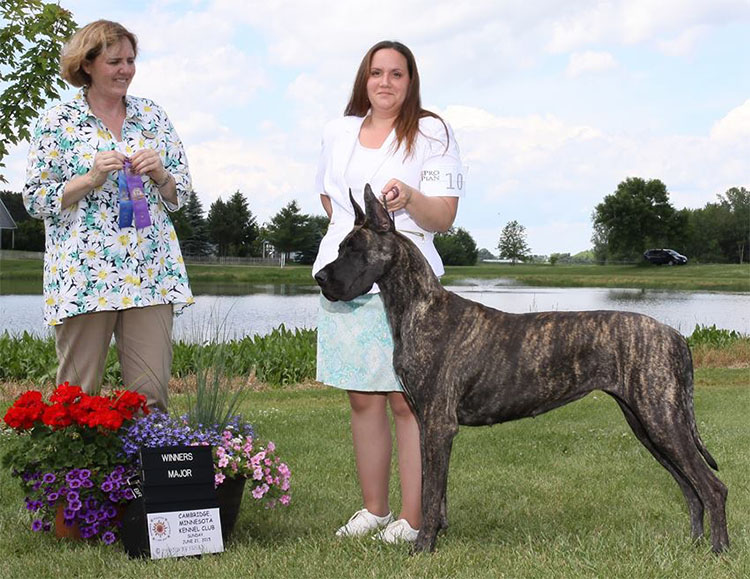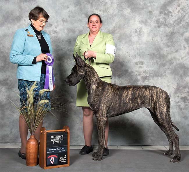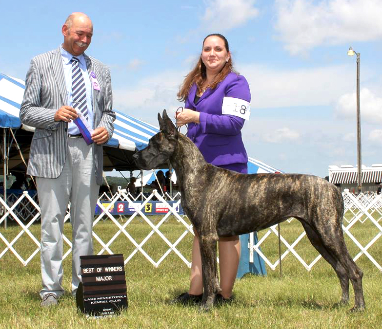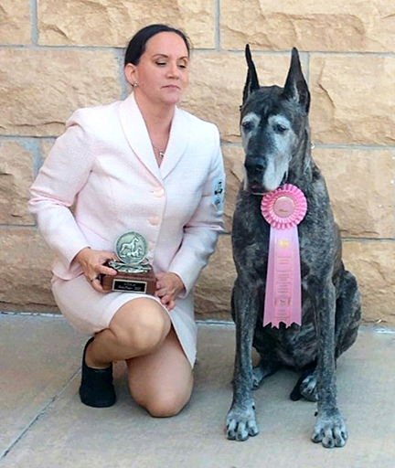 1st place in the Veteran 8 + class at the Great Dane Club of America National with Natalie Alves