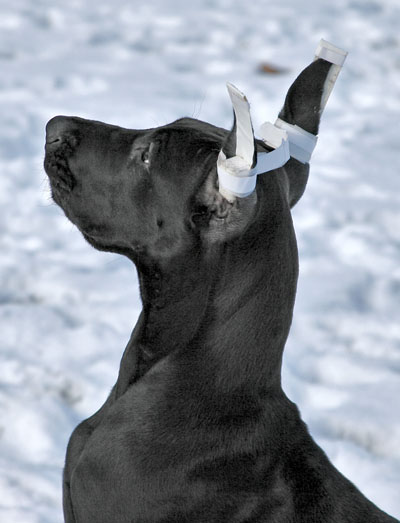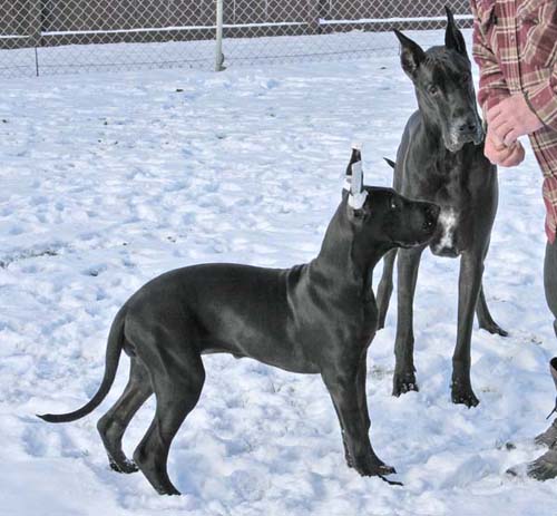 Gabby and Shadow watching for treats to "leave" daddy's hands!!!