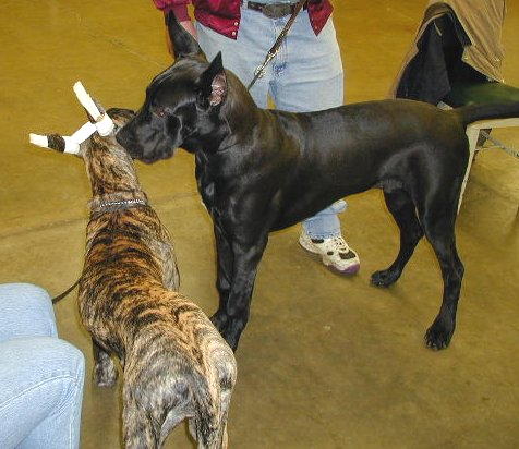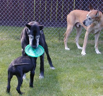 the frisbee from Shadow while Rudy checks out what is going
