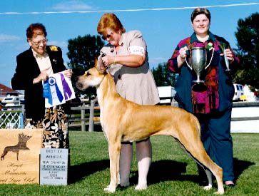 Zinka received her first 4 point major, September 7, 1997, at the Des Moines Kennel Club show going Winners Bitch and Best of Winners