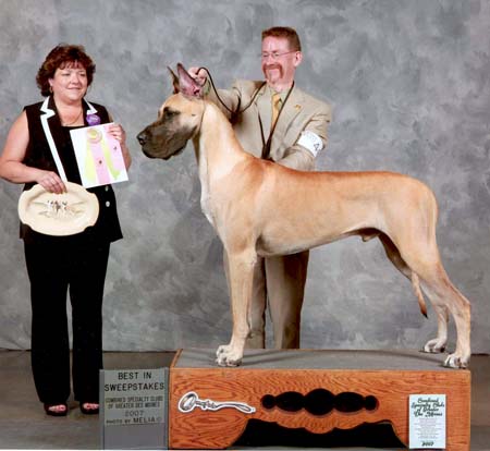 "Mello" Flighty Never Say Never Sire: Am Ch Elan's Command Decision Reimroc x Dam: Am Ch Brislyn Mustang Sally V Flighty Best in Sweeps - HMGDC Specialty Show Friday, August 24, 2007 Judge: Mr. David Miller