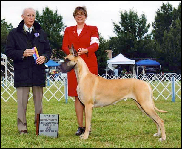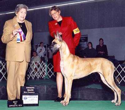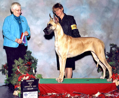 Margaret with Calee going Winners Bitch and Best of Opposite Sex at the Granite City K.C. in St. Cloud, MN on December 9, 2006 under Judge Beverly Capstick.