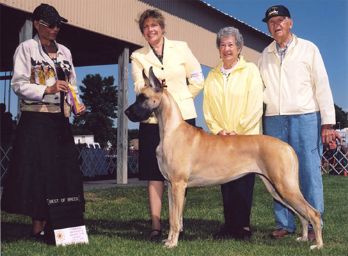 Calee going best of Breed with her mother and father attending at the Cambridge K.C. show