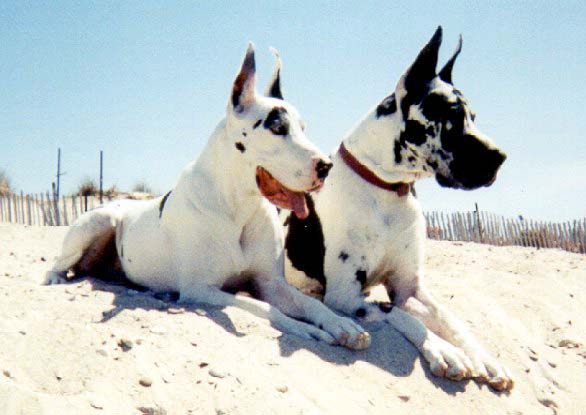Fiesta and Corbu sunning themselves on the beach