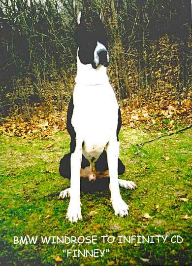 Finney completed his Utility Dog title on 4/27/2007 at an obedience trial in St. Paul, MN. He is now the 5th BMW dog to hold that title. Now he is BMW Windrose' To Infinity U.D.