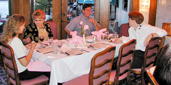 Wilbur Von Mosch and Dale Desjardins, (Karen is sitting on the other side of Dale) one of our judges. Left side: Karen Hrbacek, Dale Hrbacek, Melinda Alves, Natalie Alves, Monica Alves.