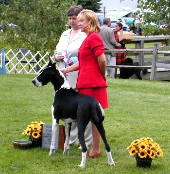 Jill's bitch, BOW, is jumping for joy and Kathy Melnyk is standing patiently