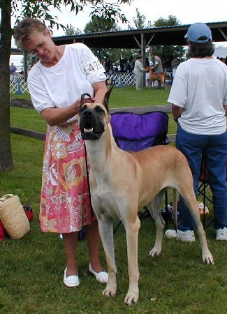 Julie Cohrs-Barker with CH Keystone Shelby O'Northwind on the right