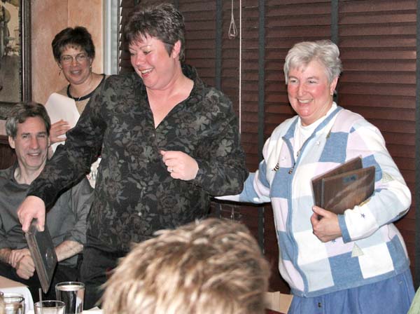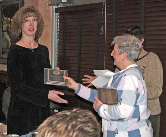 Margaret Ontl getting ready to present Lynn Cooch with the President's Award.