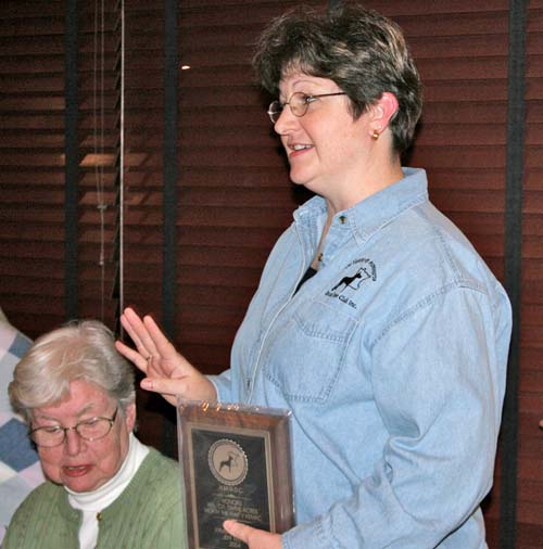 Deb Merritt accepting her award for Wifasa's Black Magic OA, OAJ, AXJ