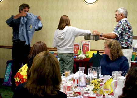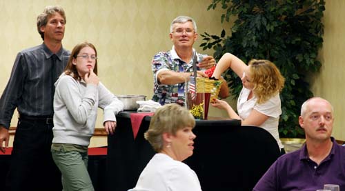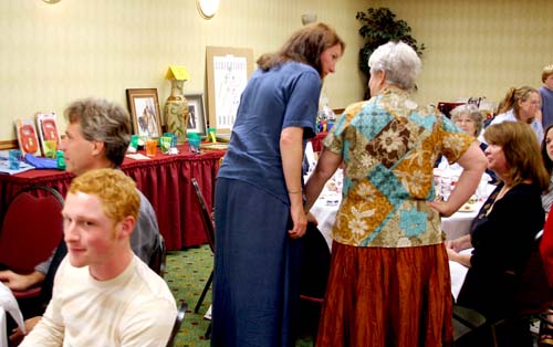 Kirk Kenney in the front on the left and Gene Kruckenberg behind him. Jen Kruckenberg standing talking to Lynn Cooch. Monica Alves is on the left sitting down.