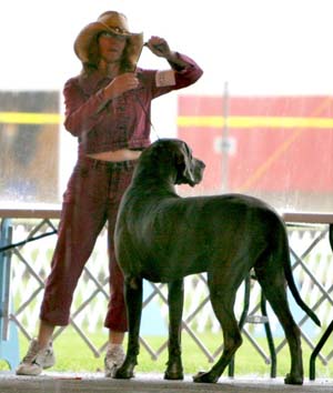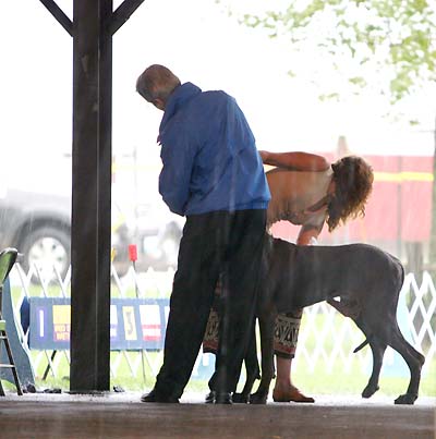 Open Blue Dog Muchado Abeautifulmind V Sterling CD Look at the rain bouncing off the table behind Sue as she is getting ready to go around the ring. It had just started to rain.