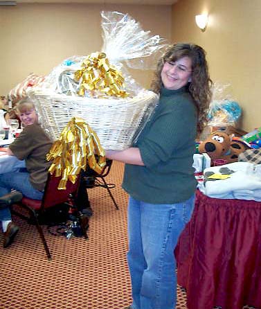 Lori Beilke winning a nice basket of goodies
