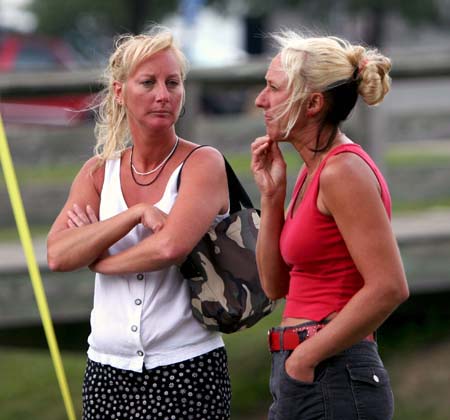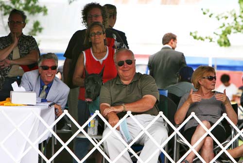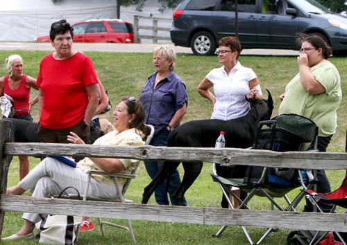 Ivalis holding on to her dane. Betsy Zellmer is standing